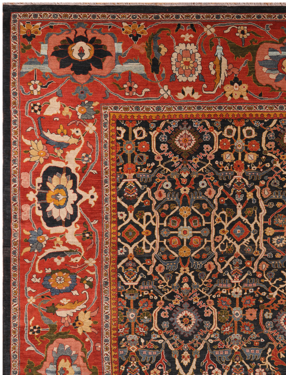Safari Rugs is proud to present our Persian Sultanabad Revival rug. Like our Tabriz production we spent a good deal of time attaining the finest wools & finest natural dyes from locally sourced vendors in and around Arak, Iran. Countless hours of research went into studying antique Sultanabad/Mahal designs and knot structure to create what we believe to be the most authentic recreations. We hand selected a team of local weavers in Arak, Iran, to help create these beautiful masterpieces. In terms of colors we decided to use a softer palette to appeal to today’s market and tastes. We’ve introduced this line for two years now at Domotex and we’re proud to say we’ve been sold out in a matter of hours each year. It’s been a great success and we are more than happy to continue the great tradition and employ weavers from Arak, Iran. Available in all standard sizes. As well as any custom size preferred.