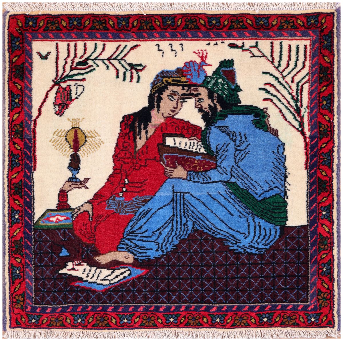 Hamedan pictorial carpets represent a unique tradition within the broader category of Hamedan rugs from western Iran. Unlike the more common Hamedan carpets that feature geometric shapes, floral patterns, or repeating medallions, these pictorial pieces are distinguished by their woven depictions of people, stories, or scenic views.