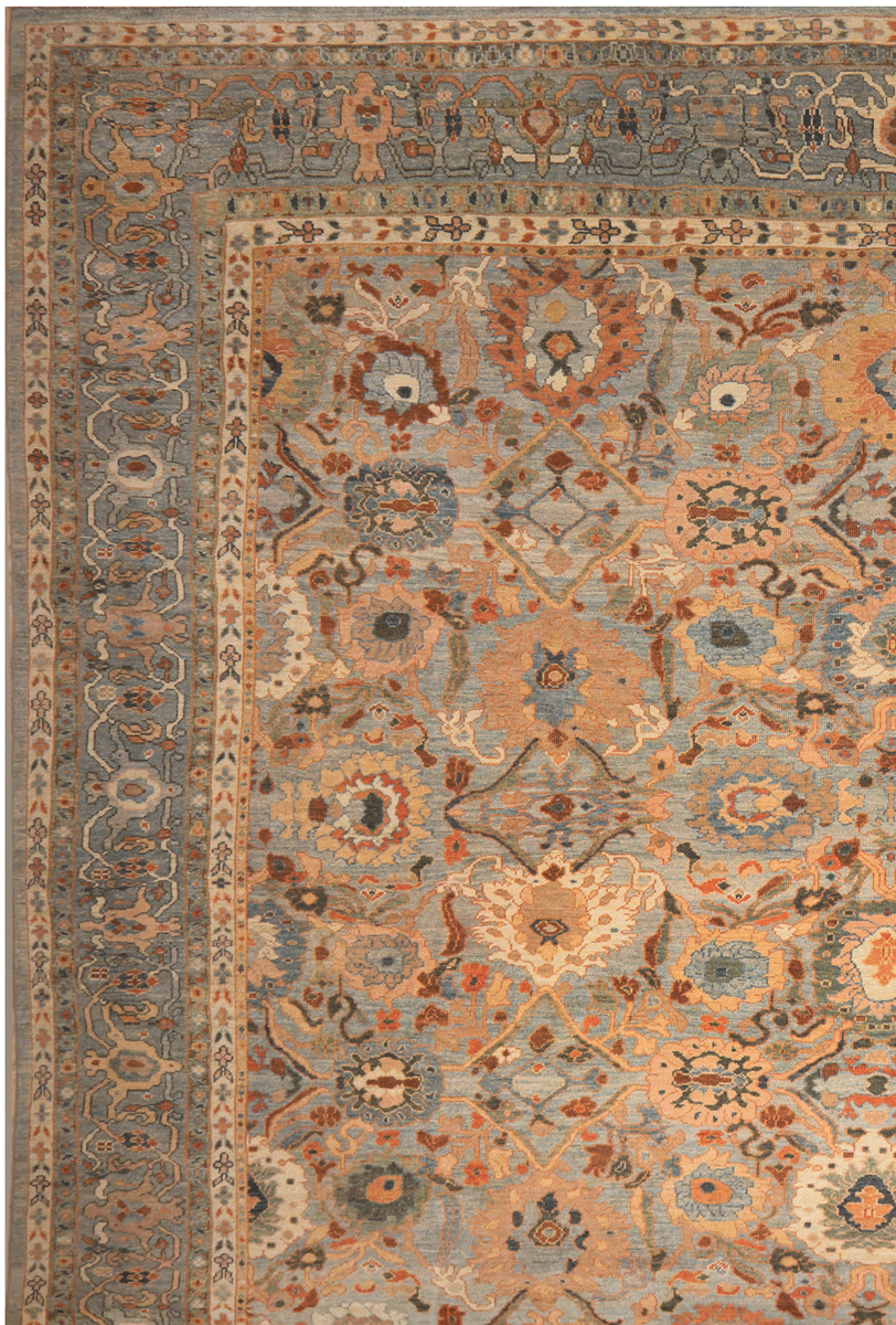 Safari Rugs is proud to present our Persian Sultanabad Revival rug. Like our Tabriz production we spent a good deal of time attaining the finest wools & finest natural dyes from locally sourced vendors in and around Arak, Iran. Countless hours of research went into studying antique Sultanabad/Mahal designs and knot structure to create what we believe to be the most authentic recreations. We hand selected a team of local weavers in Arak, Iran, to help create these beautiful masterpieces. In terms of colors we decided to use a softer palette to appeal to today’s market and tastes. We’ve introduced this line for two years now at Domotex and we’re proud to say we’ve been sold out in a matter of hours each year. It’s been a great success and we are more than happy to continue the great tradition and employ weavers from Arak, Iran. Available in all standard sizes. As well as any custom size preferred.