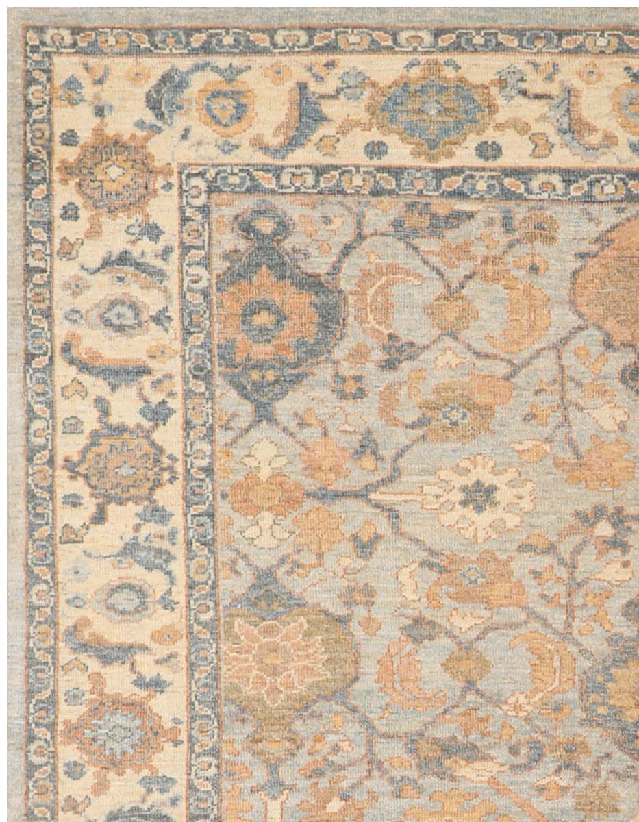 Safari Rugs is proud to present our Persian Sultanabad Revival rug. Like our Tabriz production we spent a good deal of time attaining the finest wools & finest natural dyes from locally sourced vendors in and around Arak, Iran. Countless hours of research went into studying antique Sultanabad/Mahal designs and knot structure to create what we believe to be the most authentic recreations. We hand selected a team of local weavers in Arak, Iran, to help create these beautiful masterpieces. In terms of colors we decided to use a softer palette to appeal to today’s market and tastes. We’ve introduced this line for two years now at Domotex and we’re proud to say we’ve been sold out in a matter of hours each year. It’s been a great success and we are more than happy to continue the great tradition and employ weavers from Arak, Iran. Available in all standard sizes. As well as any custom size preferred.