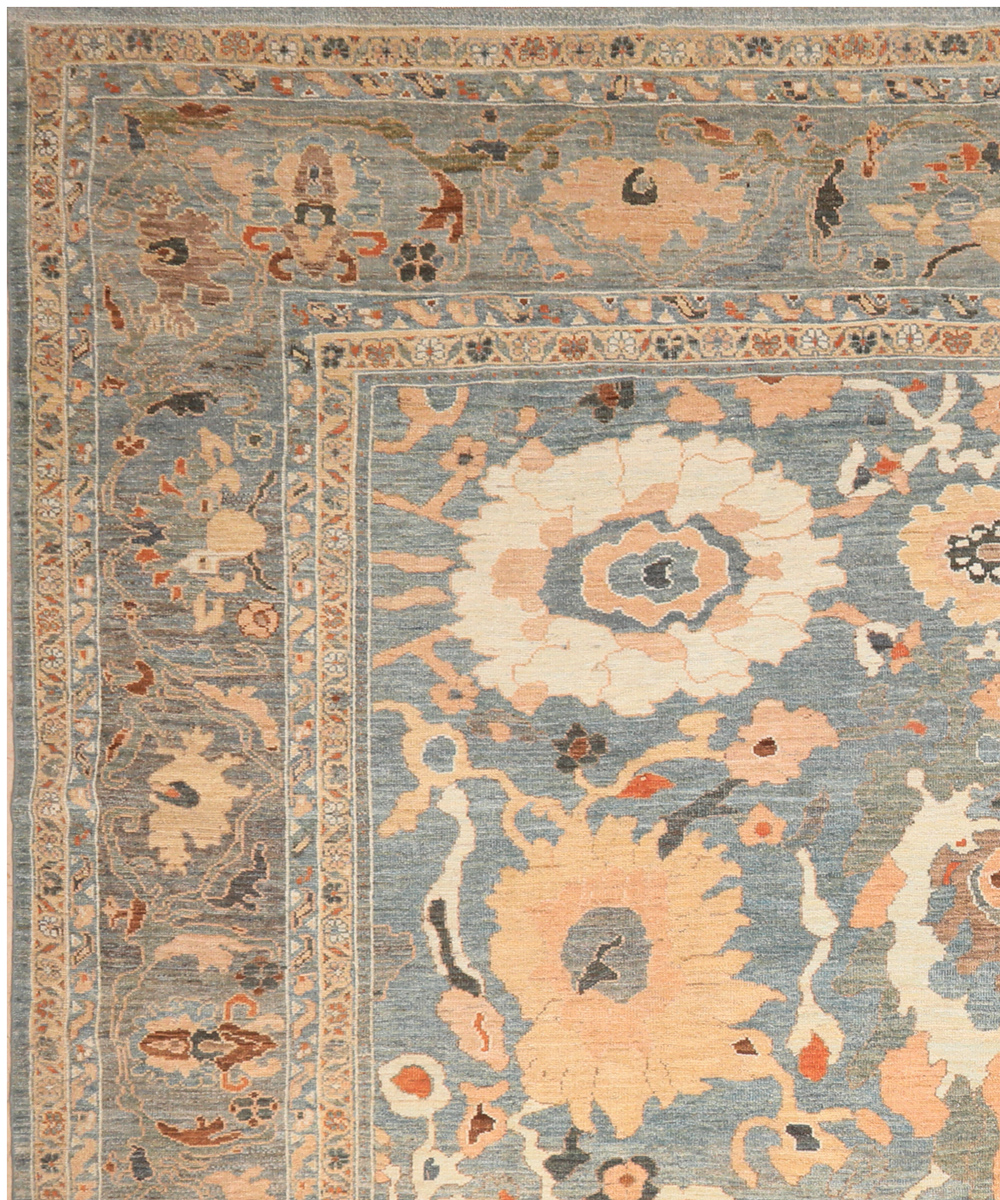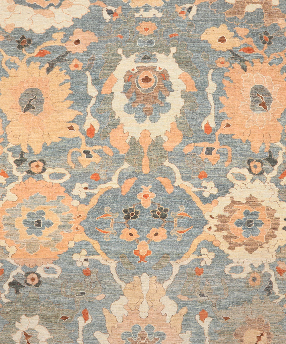 Safari Rugs is proud to present our Persian Sultanabad Revival rug. Like our Tabriz production we spent a good deal of time attaining the finest wools & finest natural dyes from locally sourced vendors in and around Arak, Iran. Countless hours of research went into studying antique Sultanabad/Mahal designs and knot structure to create what we believe to be the most authentic recreations. We hand selected a team of local weavers in Arak, Iran, to help create these beautiful masterpieces. In terms of colors we decided to use a softer palette to appeal to today’s market and tastes. We’ve introduced this line for two years now at Domotex and we’re proud to say we’ve been sold out in a matter of hours each year. It’s been a great success and we are more than happy to continue the great tradition and employ weavers from Arak, Iran. Available in all standard sizes. As well as any custom size preferred.