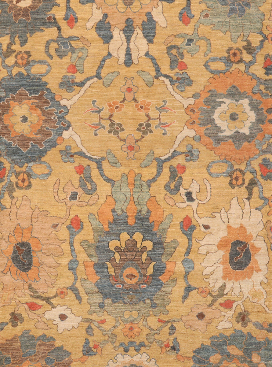 Safari Rugs is proud to present our Persian Sultanabad Revival rug. Like our Tabriz production we spent a good deal of time attaining the finest wools & finest natural dyes from locally sourced vendors in and around Arak, Iran. Countless hours of research went into studying antique Sultanabad/Mahal designs and knot structure to create what we believe to be the most authentic recreations. We hand selected a team of local weavers in Arak, Iran, to help create these beautiful masterpieces. In terms of colors we decided to use a softer palette to appeal to today’s market and tastes. We’ve introduced this line for two years now at Domotex and we’re proud to say we’ve been sold out in a matter of hours each year. It’s been a great success and we are more than happy to continue the great tradition and employ weavers from Arak, Iran. Available in all standard sizes. As well as any custom size preferred.