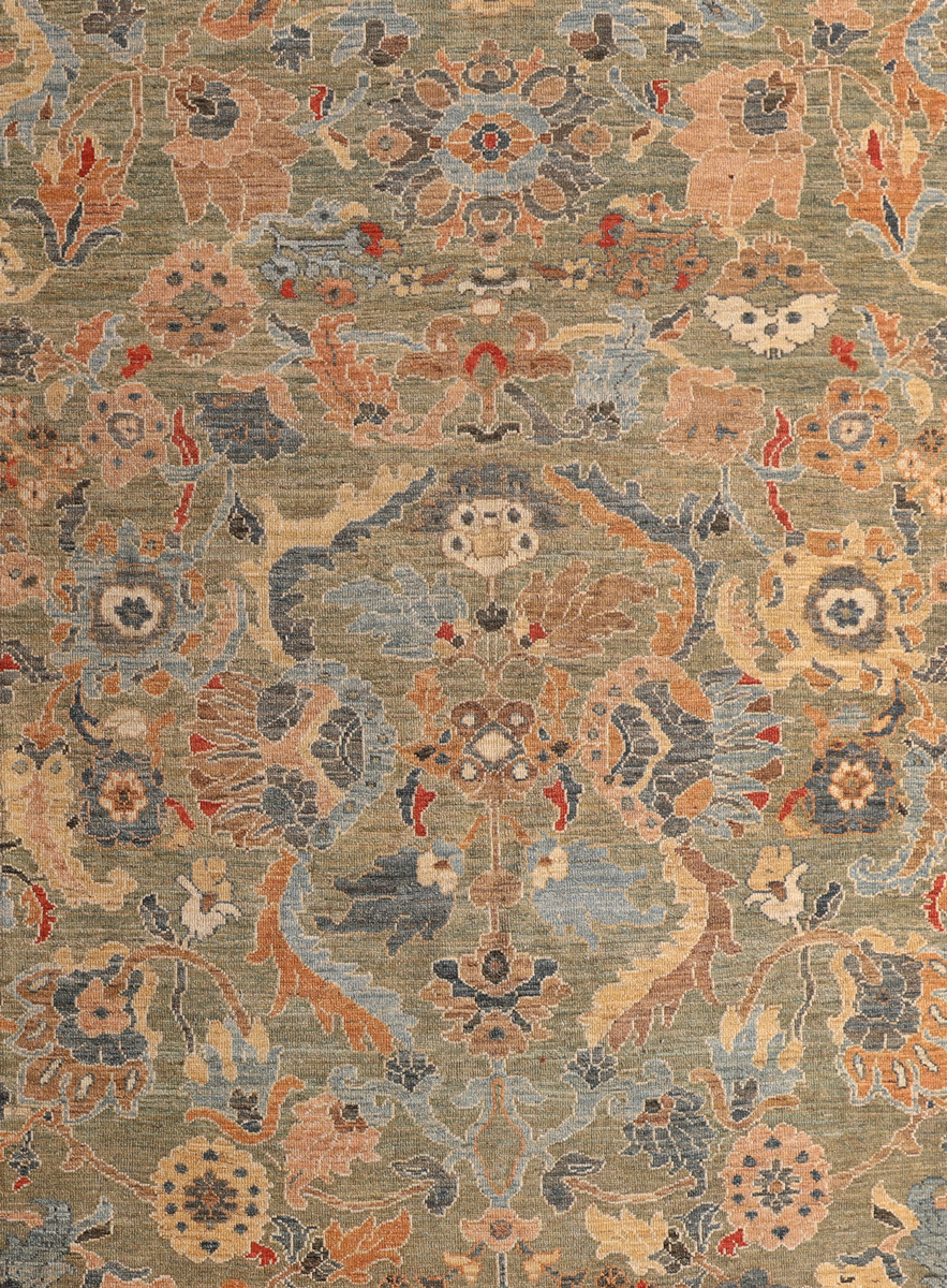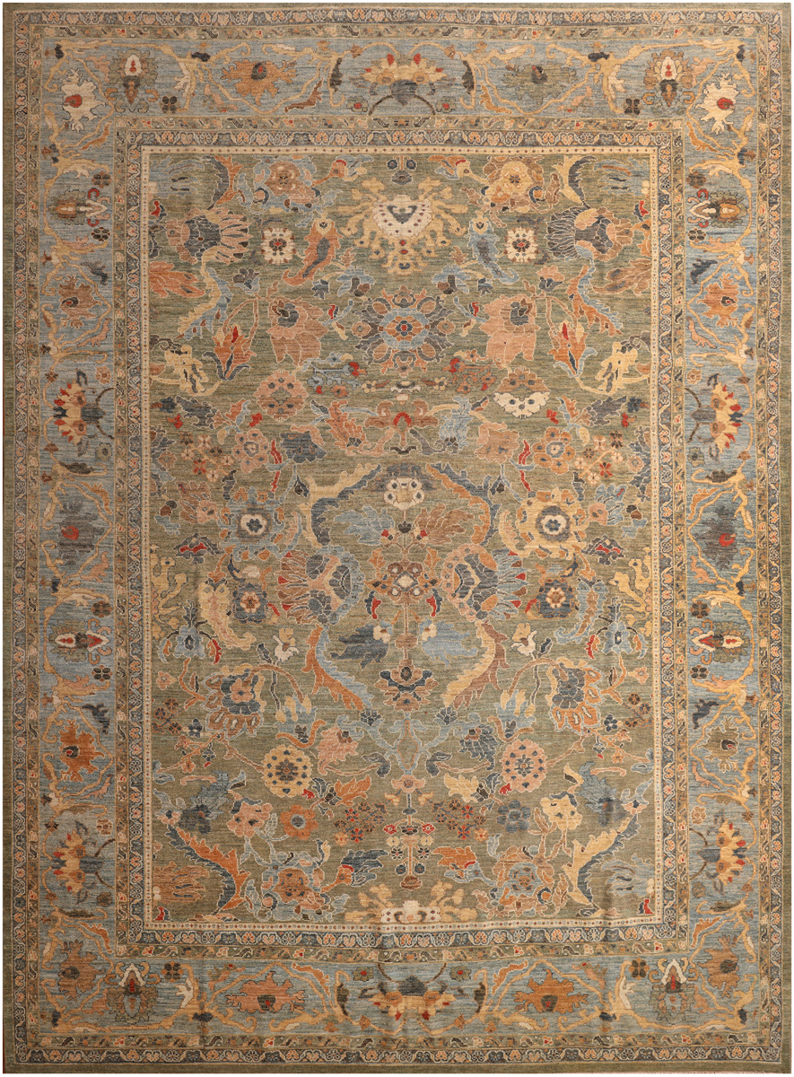 Safari Rugs is proud to present our Persian Sultanabad Revival rug. Like our Tabriz production we spent a good deal of time attaining the finest wools & finest natural dyes from locally sourced vendors in and around Arak, Iran. Countless hours of research went into studying antique Sultanabad/Mahal designs and knot structure to create what we believe to be the most authentic recreations. We hand selected a team of local weavers in Arak, Iran, to help create these beautiful masterpieces. In terms of colors we decided to use a softer palette to appeal to today’s market and tastes. We’ve introduced this line for two years now at Domotex and we’re proud to say we’ve been sold out in a matter of hours each year. It’s been a great success and we are more than happy to continue the great tradition and employ weavers from Arak, Iran. Available in all standard sizes. As well as any custom size preferred.
