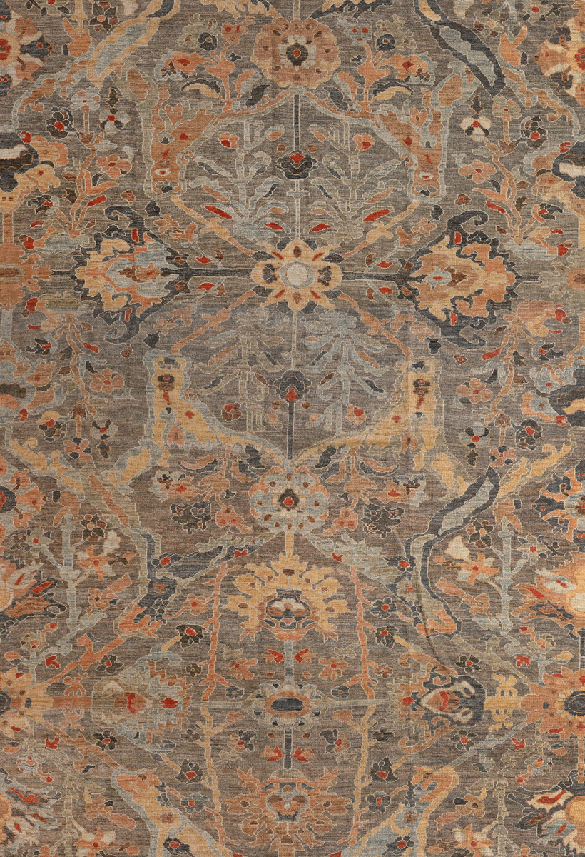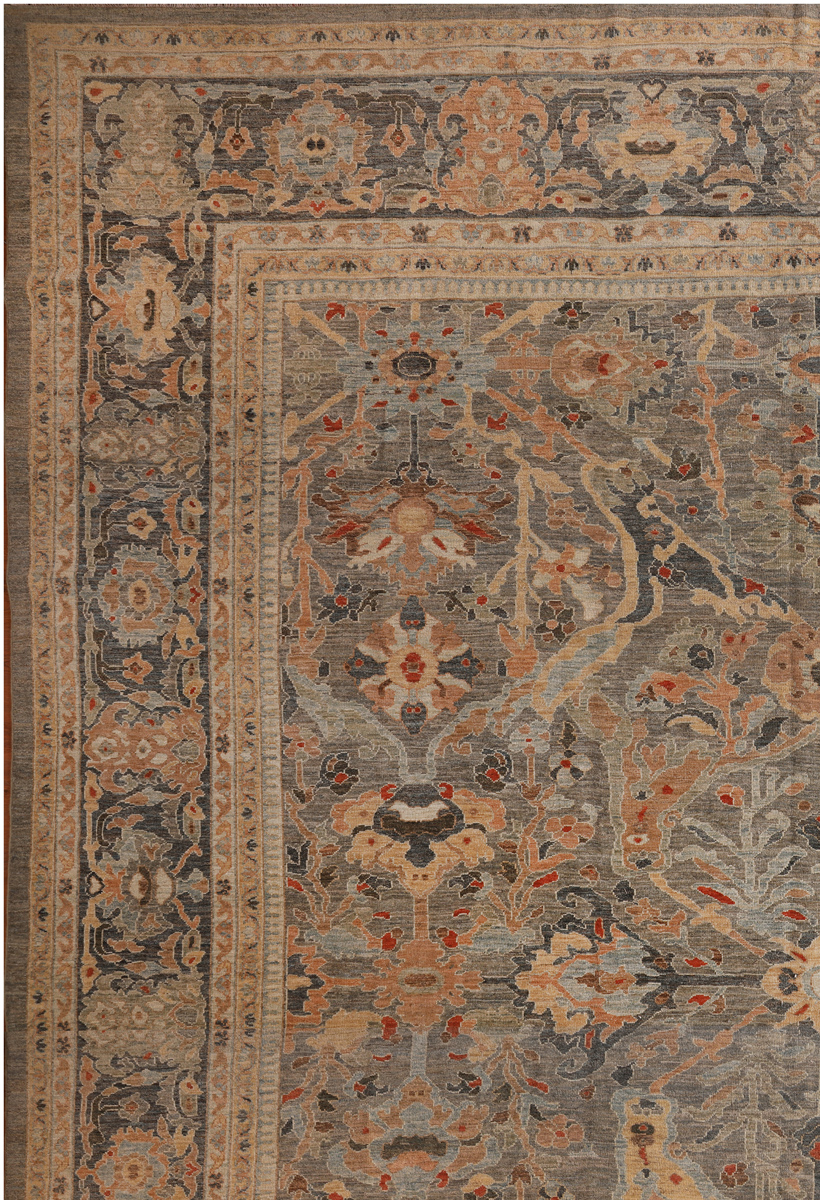 Safari Rugs is proud to present our Persian Sultanabad Revival rug. Like our Tabriz production we spent a good deal of time attaining the finest wools & finest natural dyes from locally sourced vendors in and around Arak, Iran. Countless hours of research went into studying antique Sultanabad/Mahal designs and knot structure to create what we believe to be the most authentic recreations. We hand selected a team of local weavers in Arak, Iran, to help create these beautiful masterpieces. In terms of colors we decided to use a softer palette to appeal to today’s market and tastes. We’ve introduced this line for two years now at Domotex and we’re proud to say we’ve been sold out in a matter of hours each year. It’s been a great success and we are more than happy to continue the great tradition and employ weavers from Arak, Iran. Available in all standard sizes. As well as any custom size preferred.