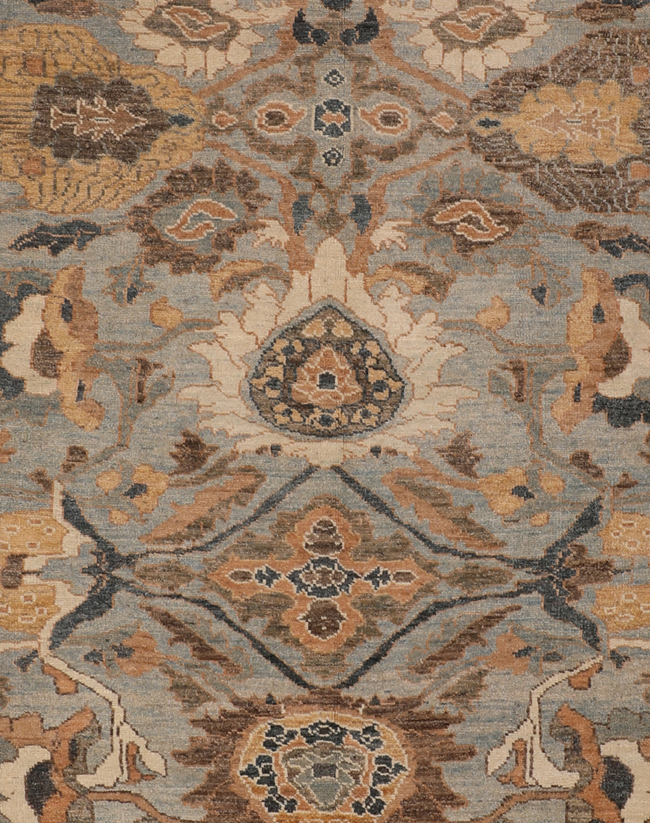 Safari Rugs is proud to present our Persian Sultanabad Revival rug. Like our Tabriz production we spent a good deal of time attaining the finest wools & finest natural dyes from locally sourced vendors in and around Arak, Iran. Countless hours of research went into studying antique Sultanabad/Mahal designs and knot structure to create what we believe to be the most authentic recreations. We hand selected a team of local weavers in Arak, Iran, to help create these beautiful masterpieces. In terms of colors we decided to use a softer palette to appeal to today’s market and tastes. We’ve introduced this line for two years now at Domotex and we’re proud to say we’ve been sold out in a matter of hours each year. It’s been a great success and we are more than happy to continue the great tradition and employ weavers from Arak, Iran. Available in all standard sizes. As well as any custom size preferred.